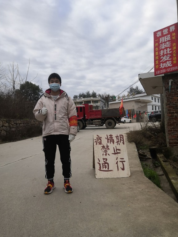 入党积极分子张飞参加了河南省开封市祥符区朱仙镇乡故依街村抗击疫情路口卡点执勤工作,同退伍军人协助村干部在卡点执勤,检查过往行人和车辆。
