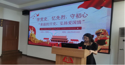 本次读书分享会的主题是“学党史、忆先烈、守初心——重温抗日史,弘扬爱国情”。在此次党史读书分享会上,一共有16名研究生党员分别进行了读党史心得分享,均围绕“中国共产党成为抗日战争中的中流砥柱”这一中心思想。