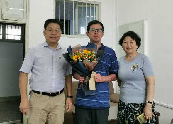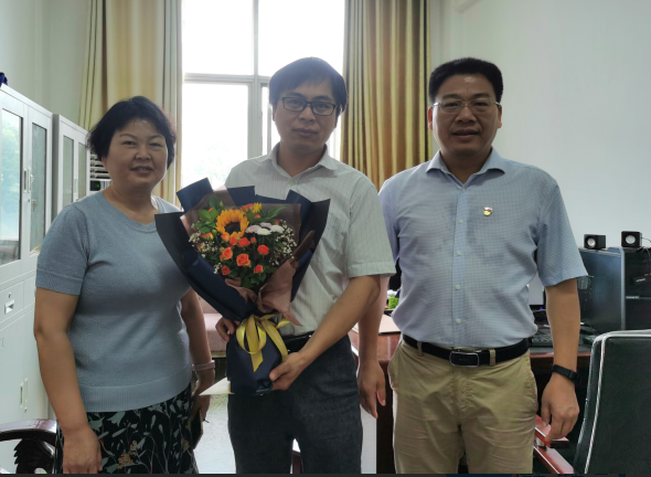 接着走访慰问了吴佳博士。在自动化系办公室,金义华为优秀党员教师吴佳博士献上鲜花,对他入校几年来为学院的辛勤付出表示衷心感谢。吴佳博士不仅在自身教学科研上默默奉献、潜心钻研,而且为学院的专业认证、学科建设辛勤付出,服从安排、勇于担当。对于学院党委的关心,吴佳博士表示将始终坚守初心,继续发挥党员模范带头作用,一如既往地为学院为系部的发展贡献自己的力量。