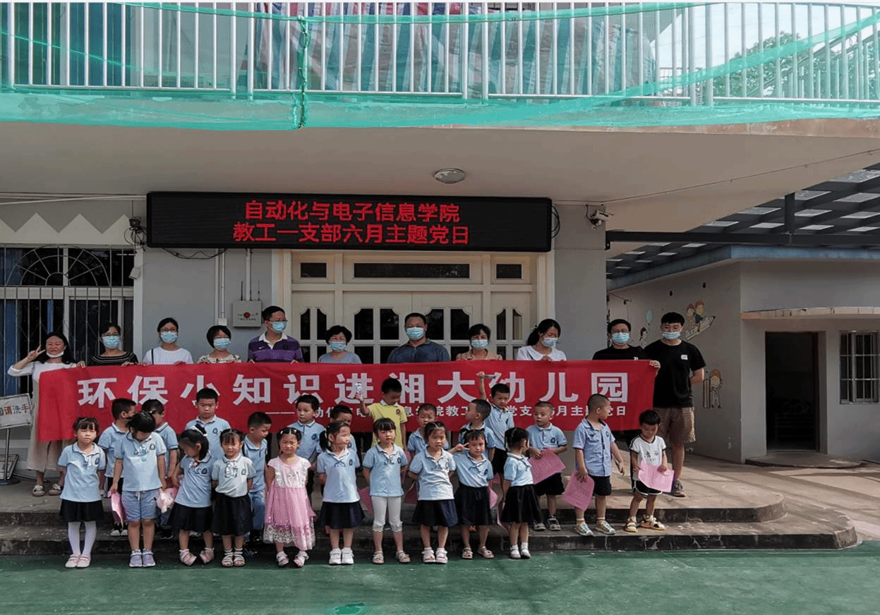 教工一支部全体党员到湘大幼儿园开展“环保知识进校园”主题党日活动,学院党委书记金义华、党委副书记郭凤安作为支部成员参加了活动。