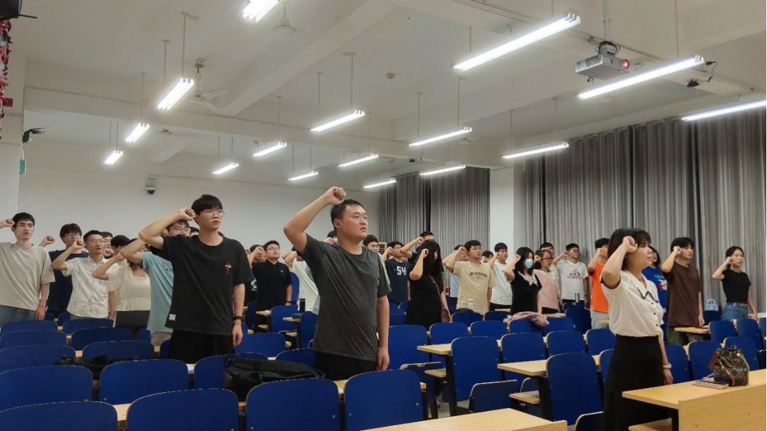 本科生第一党支部于兴湘教学楼C402教室召开预备党员接收大会,讨论、决议关于刘旭东等11名同学为预备党员相关事宜。此次大会由党支部副书记刘锐萍主持,20位正式党员、两位预备党员和14位发展对象到场参加。