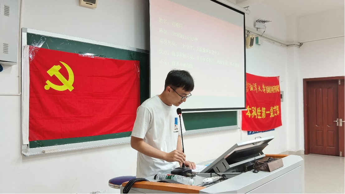 主持人李佩霖同志介绍会议流程后,会议正式开始。预备期满、申请转正的19位预备党员依次上台发言,汇报自己在预备期间在思想、学习、生活等各个方面的基本表现,郑重地向党组织提出转正申请,入党介绍人针对预备党员在预备期间的综合表现进行评价,指出其优点和不足,对是否同意其如期转正给出了明确的意见。