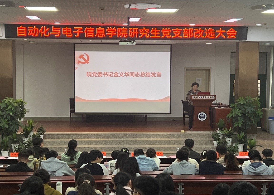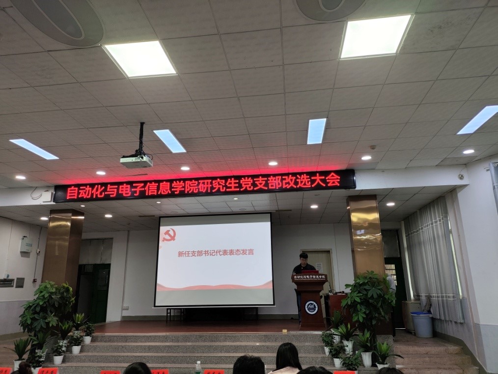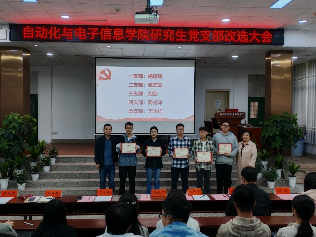 (通讯员 杨瑾瑾 吴政宏)10月8日下午,自动化与电子信息学院研究生党支部在工科楼阶梯教室顺利举行了支部改选大会。学院党委书记金义华、党委委员谭平安和各研究生党支部支委候选人以及全体党员参加了此次大会。会议由第三党支部书记刘剑同志主持。