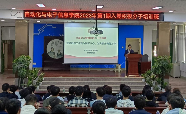 2023年第1期入党积极分子培训班第三次专题讲座在工科楼阶梯教室举行。校党委宣传部副部长孙明辉做“全面学习贯彻党的二十大精神:意识形态工作是为国家立心、为民族立魂的工作”主题报告。