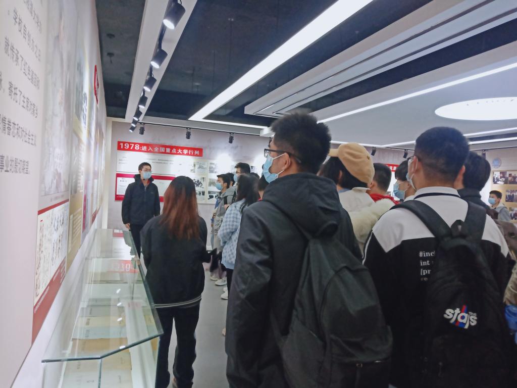 所有学员分为两队,在讲解员的带领下分别依次参观了校史馆的四个展厅。大家在第一展厅了解了爱漫岛