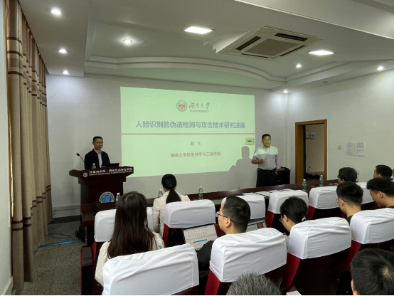及计算机学院·网络空间安全学院图像处理、人脸识别等相关领域师生近60名师生参与。彭飞教授围绕人脸识别的伪造检测与攻击技术,由浅入深地介绍了当前人脸识别系统的应用场景及主要面临的人脸欺骗攻击类型与特点,并在此基础上介绍了彭飞教授团队在人脸伪造检测、人脸融合攻击检测与合谋者复原、人脸欺骗攻击、计算机生成人脸与真实人脸反取证等方面的研究工作,还就面向人脸识别的数字图像取证技术的发展进行了展望。