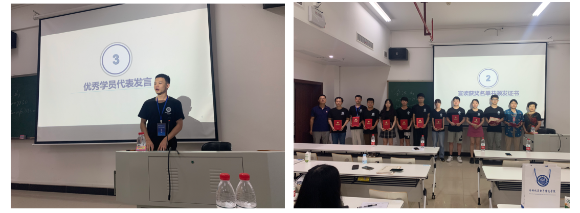 的赵乾广三位同学作为优秀学员代表发言,分享收获并致谢。自电院党委金义华书记和周彦副院长为本届的11名优秀学员颁发荣誉证书。
