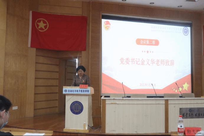 大会第一项为全体成员奏唱国歌。之后由党委书记金义华老师致辞。她指出青年工作是党的工作的重要组成部分,做好青年工作是一件事关全局的战略性工作,学院党委会将会一如既往地支持青年工作的发展,并对如何做好学院青年工作提出建议。