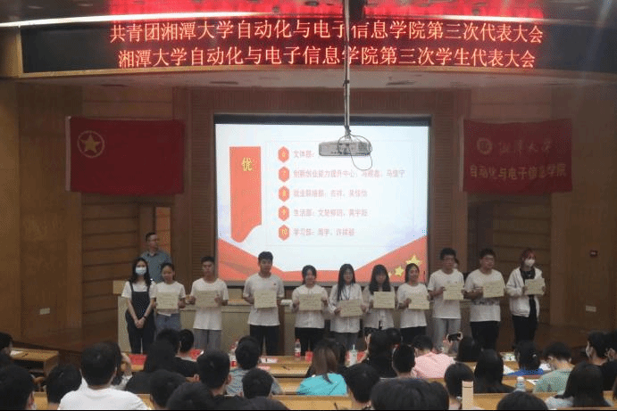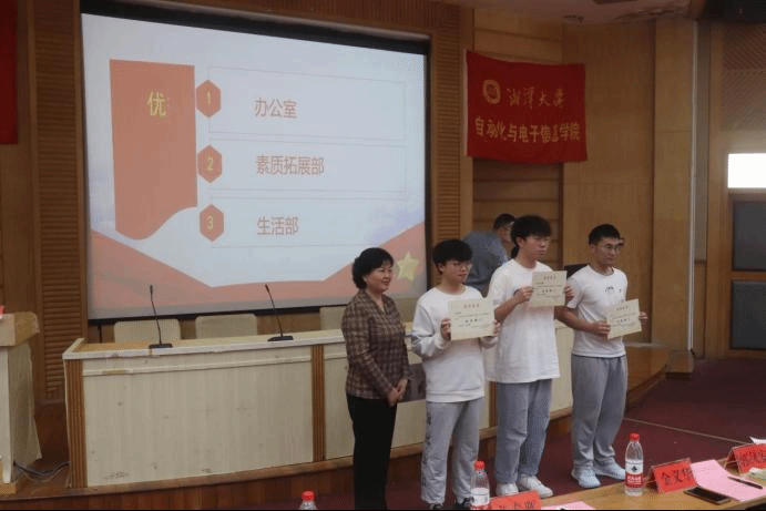伴随着乐声响起,优秀部门、干部干事颁奖仪式开始。老师们为获奖部门、干部干事颁发证书,表达了全体团委成员的肯定,感谢全体团学成员过去一学年的辛苦付出!