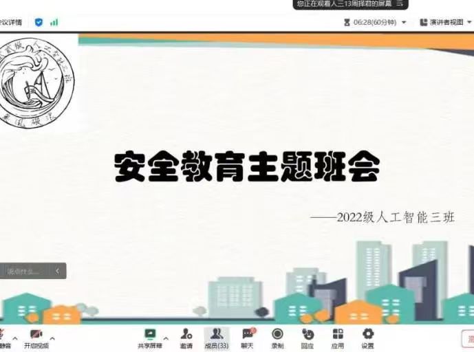 组织各班开展了安全教育主题班会。本次班会从六个方面对同学们进行安全教育,分别是:交通安全教育、学生心理健康教育、诚信考试、预防流感、寝室防火安全教育、校外住宿学生安全教育。帮助同学们树立安全责任意识,提升学生安全素养,用典型事故案例警示学生们,引导学生们进一步增强安全教育意识和法治观念,牢固树立正确的人生观、价值观。
