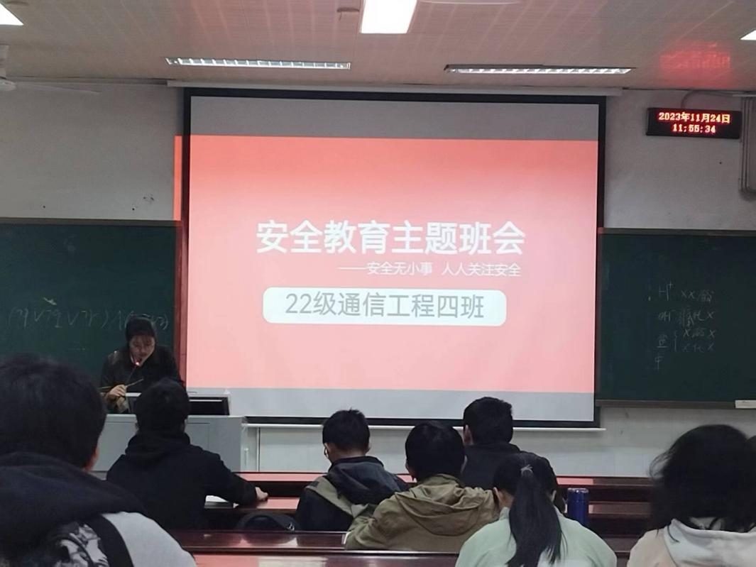 2022 级通信工程四班在学院指导安排下,召开了一场以“安全无小事,人人关注安全”为主题的安全教育班会。班会在班主任旷怡的精心组织和指导下进行。