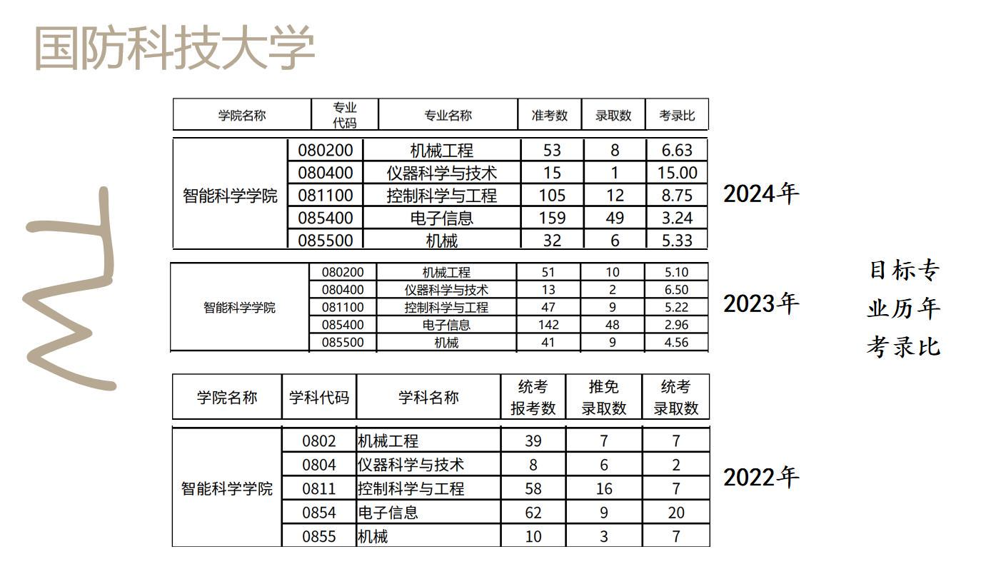 第三组和第八组则将目光放在考录比上,对统考录取数、推免录取数、总录取数以及复试情况进行了细致分析,让同学们对报考院校的录取难度有了直观的认识,还讲解了如何通过查询目标院校不同方向的考录比来选择更好的升学方向提高升学成功率。