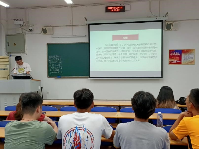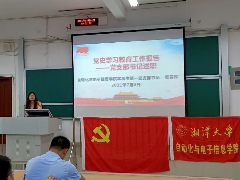 会议首先由党支部书记黄春晖老师代表支部委员会向全体党员报告半年来党支部工作情况,重点报告了党史学习教育情况。黄春晖老师主要从三个方面展开报告:一、党史学习教育简介;二、党史学习教育开展情况;三、党史学习教育存在问题。今年是建党100周年,在学校、学院的指导和带领下,支部全体党员通过通过唱响红色歌曲、学习红色诗词、欣赏红色影片、重游红色景点、演绎红色故事、聆听红色课程、阅读红色经典、红色宣讲沙龙、党史知识竞赛等“十个一”活动,认真学习百年党史,了解党的百年光辉历程、伟大成就和宝贵经验,真正做到知史爱党,知史爱国。同时,她也指出党史学习教育中存在的问题,比如理论学习广度和深度不够、少数党员参加活动积极性不够、党员联系服务群众不够等,要求党员同志们对照自身不足,作出整改承诺,一项一项改进提高。
