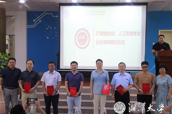 1985级校友、哈电风能风电项目建设负责人赵然斌,1987级校友、长沙海博机电设备有限公司总经理李检桃,2001级校友、博世汽车部件(长沙)有限公司电气设计经理余高意,1984级校友、湖南省农业银行网络金融部副总经理周应堂,1992级校友、民航湖南空管分局副局长赵坚,1992级校友、湖南湘溪农业股份有限公司董事长、湖南湘溪电子商务有限公司董事长兼总经理周泓等6位校友受聘为自动化、人工智能专业第3批班级企业导师。