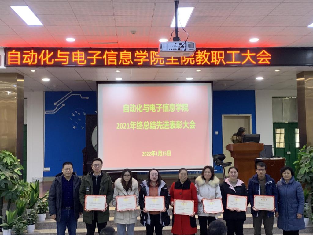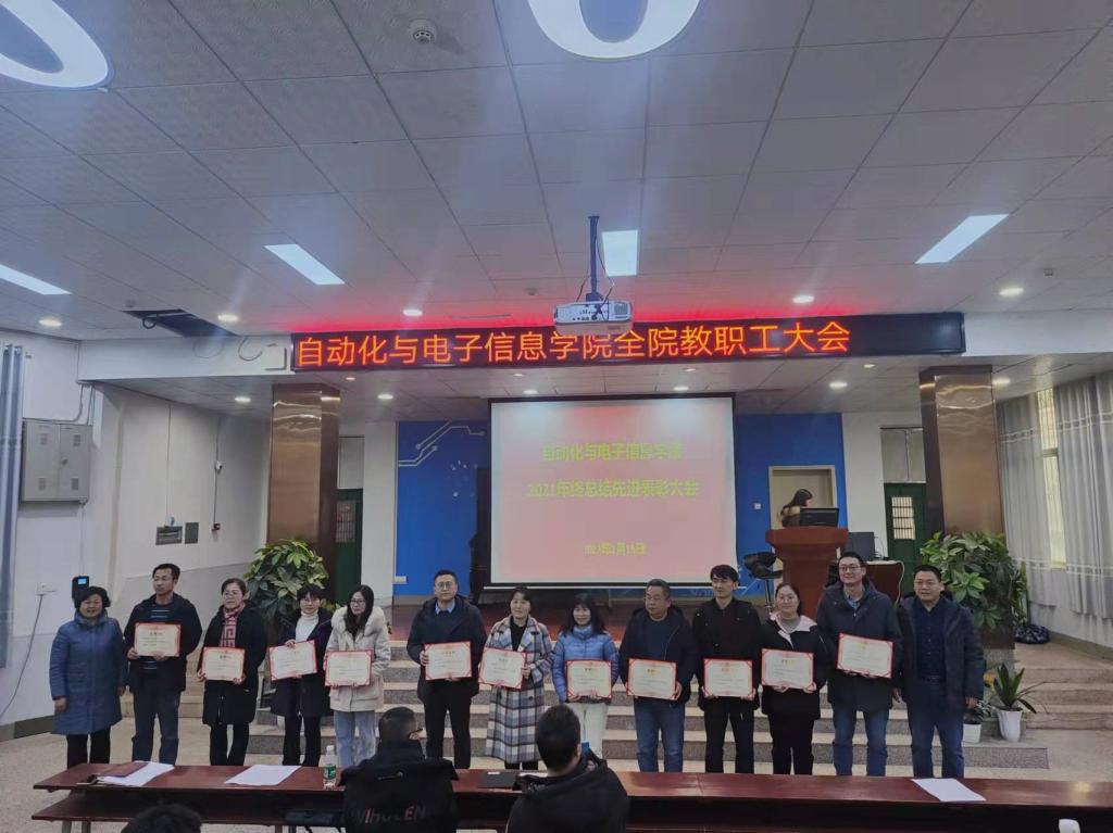 2021年终总结先进表彰大会在工科楼阶梯教室隆重举行,学院领导班子、全体教职工参加会议。