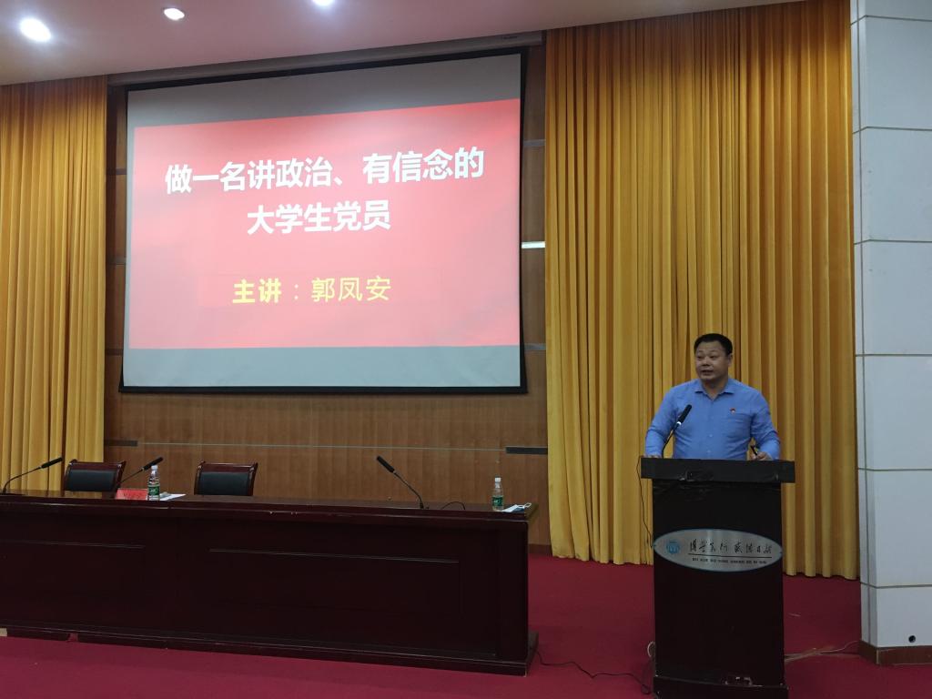 开班典礼结束后,开展第一次专题讲座。学院党委副书记郭凤安为入党积极分子全体学员开展主题为《做一名讲政治、有信念的大学生党员》的专题讲座,他在简单阐述了政治的内涵、讲政治的重要性后,从三个方面重点讲述了大学生应该如何讲政治:树牢政治信念、坚定政治立场、严守政治纪律。在授课过程中,郭书记结合最新时事政治,通过播放视频、讲述红色故事等方式生动突出了课程的主题,学员们均表示受益匪浅。