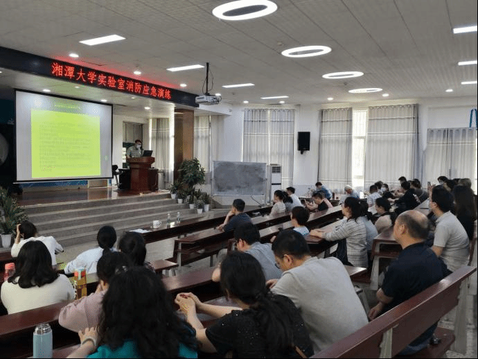 (通讯员吴静阳)为进一步增强学院师生的消防安全意识,普及消防安全知识,提升火灾预防和自救能力,4月26日下午,由校保卫处消防安全科、实验室与资产管理处组织自电院与计网院在工科楼阶梯教室,开展2022年消防安全知识讲座与灭火演练活动。此次讲座邀请了湖南省普消消防宣教中心肖志强教官进行现场教学指导,消防科李浏科长、实资处简立君副处长、刘小玲科长出席。院党委书记金义华老师、党委委员谭平安老师、实验室全体老师及近3年学院新进教师、研究生会干部和各实验室兼职安全员参加培训。