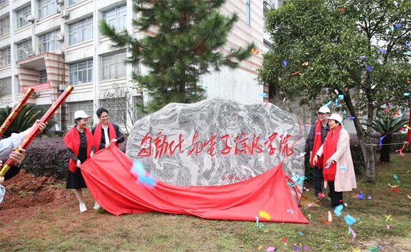 仪式最后,校友办领导、学院领导以及院友代表一起为院名石揭幕,并合影留念。