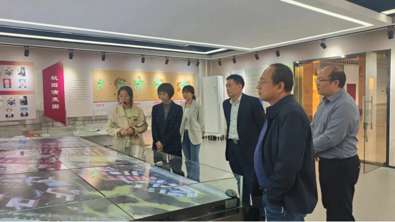 的办学历程与发展脉络。在馆内,书记详细聊了了湘大的发展历程、专业设置、人才培养及近些年取得的办学成果。