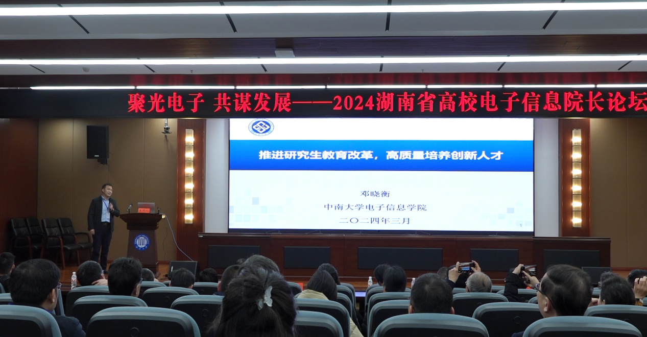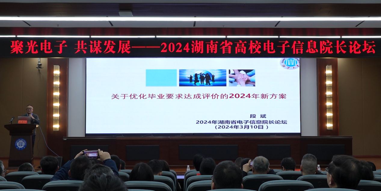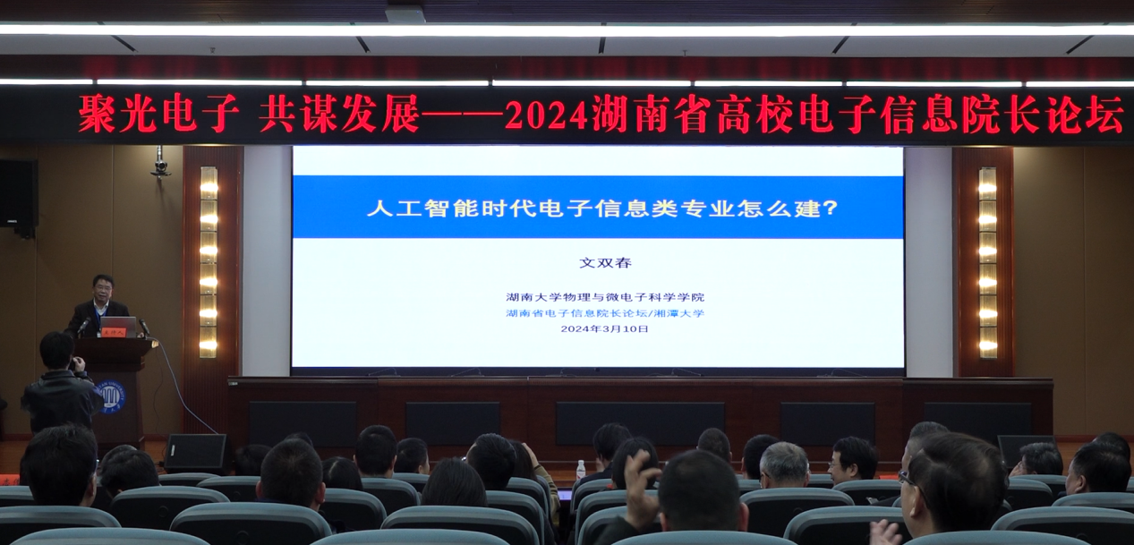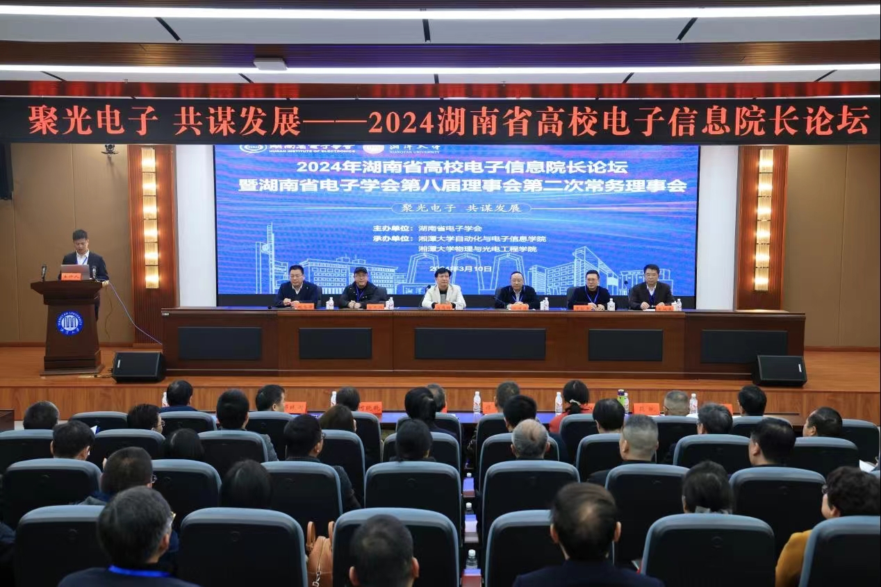 (通讯员 彭德义)3月10日,2024年湖南省高校电子信息院长论坛暨湖南省电子学会第八届理事会第二次常务理事会议在我校隆重召开,学会第八届理事会成员及来自全省50多所本科高职院校电子信息学院的院长、副院长、教授以及部份企业代表,共100余人出席了本次会议。