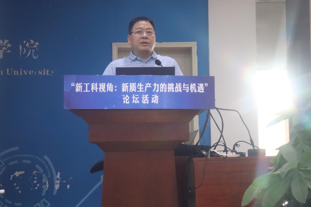 院长姚志强教授进行致辞。他指出,新质生产力作为一种先进生产力,正在全球范围内推动产业变革、经济结构优化和社会发展模式的转变,在这一背景下,我们迎来了前所未有的发展机遇,同时也面临着严峻的挑战。面对机遇与挑战,应该采取积极措施,把握机遇,应对挑战,加强科技创新,推动新技术、新产业、新业态的发展,提高国家核心竞争力。作为工科院系学生,我们应主动培养创新意识,提升创新能力,将专业知识融入到行业发展之中,推动新质生产力的发展。