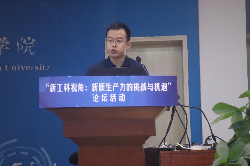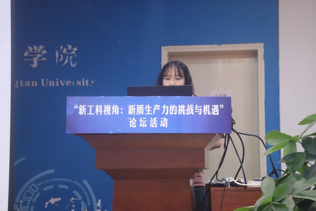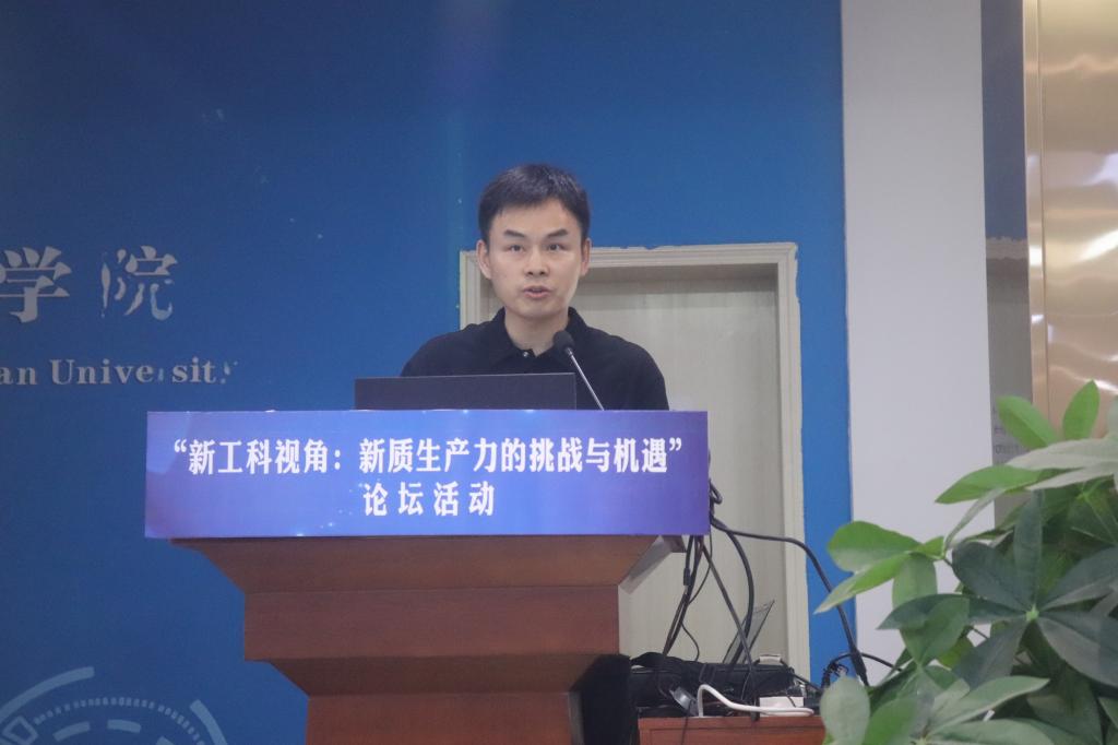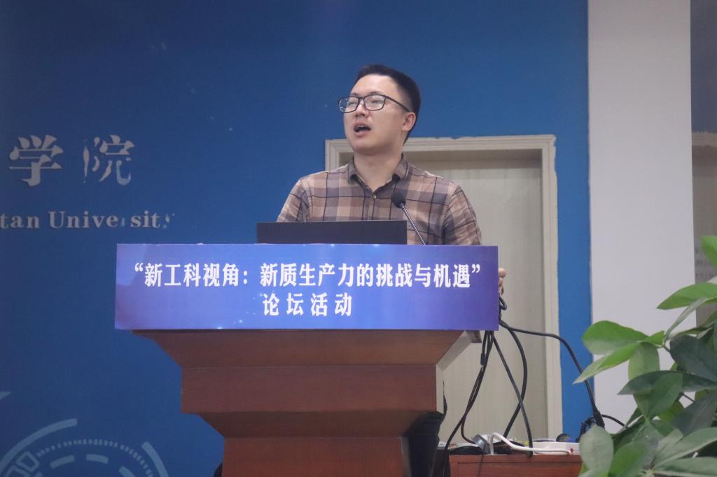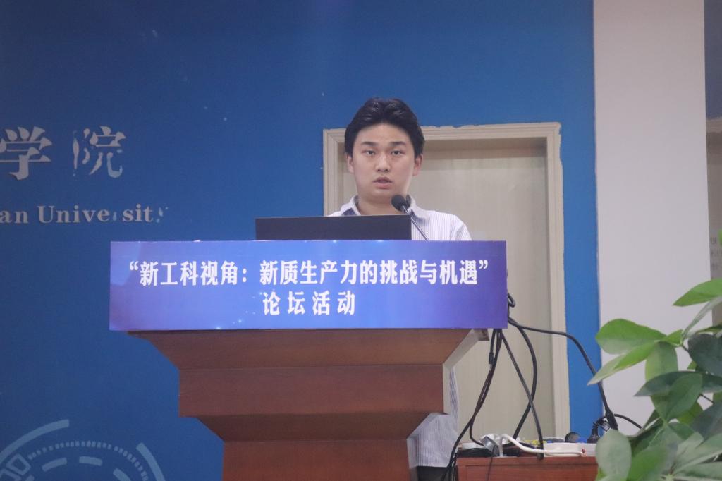 青年教师代表孟步敏和金鼎沸、实验员代表向礼丹、研究生代表邓家俊、本科生代表罗彩虹,分别就“新质生产力的机遇与挑战”这一主题,分享了自己对于新质生产力的理解、新质生产力对于工科院系师生的机遇与挑战,以及如何利用自己所学专业知识促进新质生产力的发展。