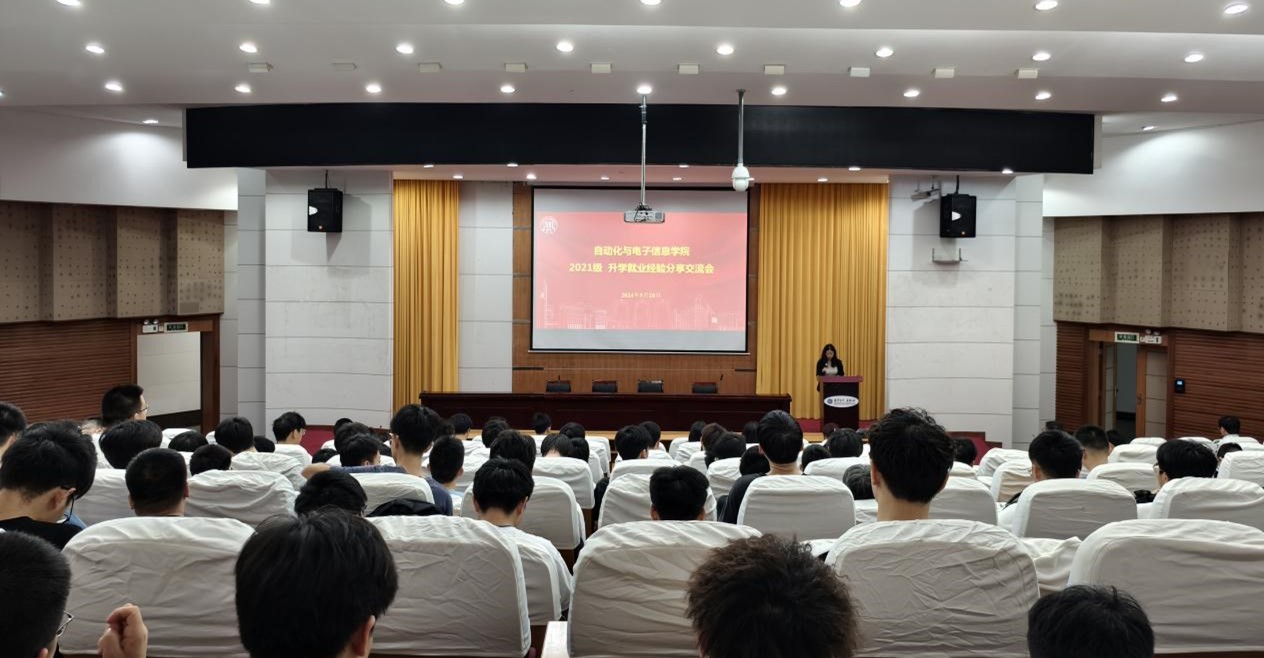 于5月20日在逸夫楼第一报告厅举办了2021级就业升学经验分享交流会。学院团委书记文林波、辅导员熊峰、2020级优秀毕业生代表、及2021级全体学生参加。本次分享会分为“就业指导分享”和“考研经验分享”两部分进行。