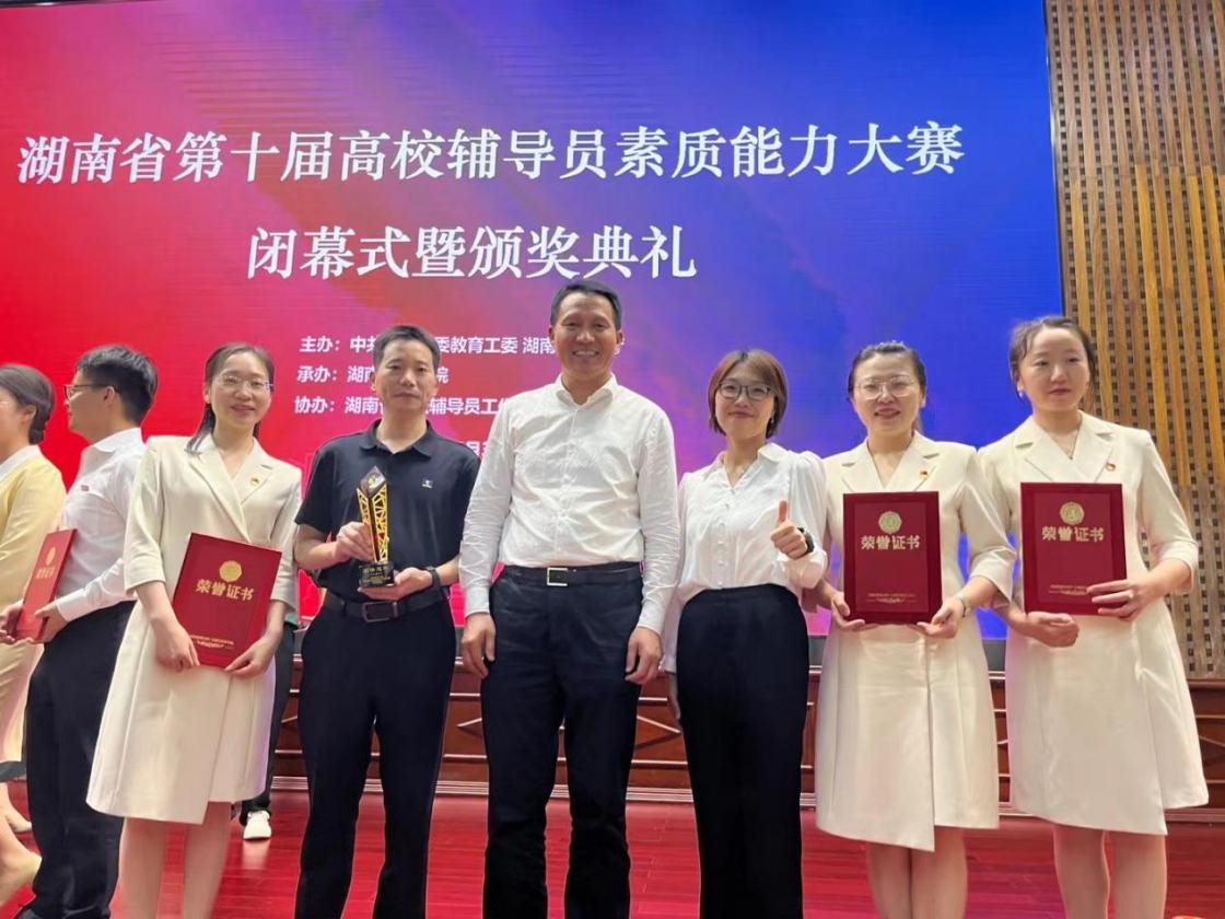陈恬(右二)获第十届湖南省高校辅导员素质能力大赛本科院校组个人特等奖