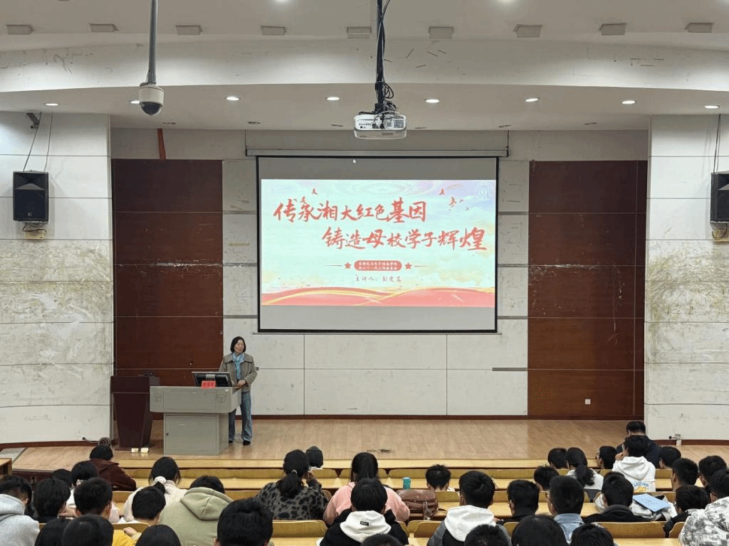 关工委于12月3日在逸夫楼第二报告厅组织开展以“传承湘大红色基因,铸造母校学子辉煌”爱国荣校主题公开课。学院关工委副主任彭爱莲担任主讲嘉宾进行授课,学院党委副书记、关工委主任郭凤安,辅导员熊峰出席,2024级自动化专业与人工智能专业全体学生参加了此次活动。