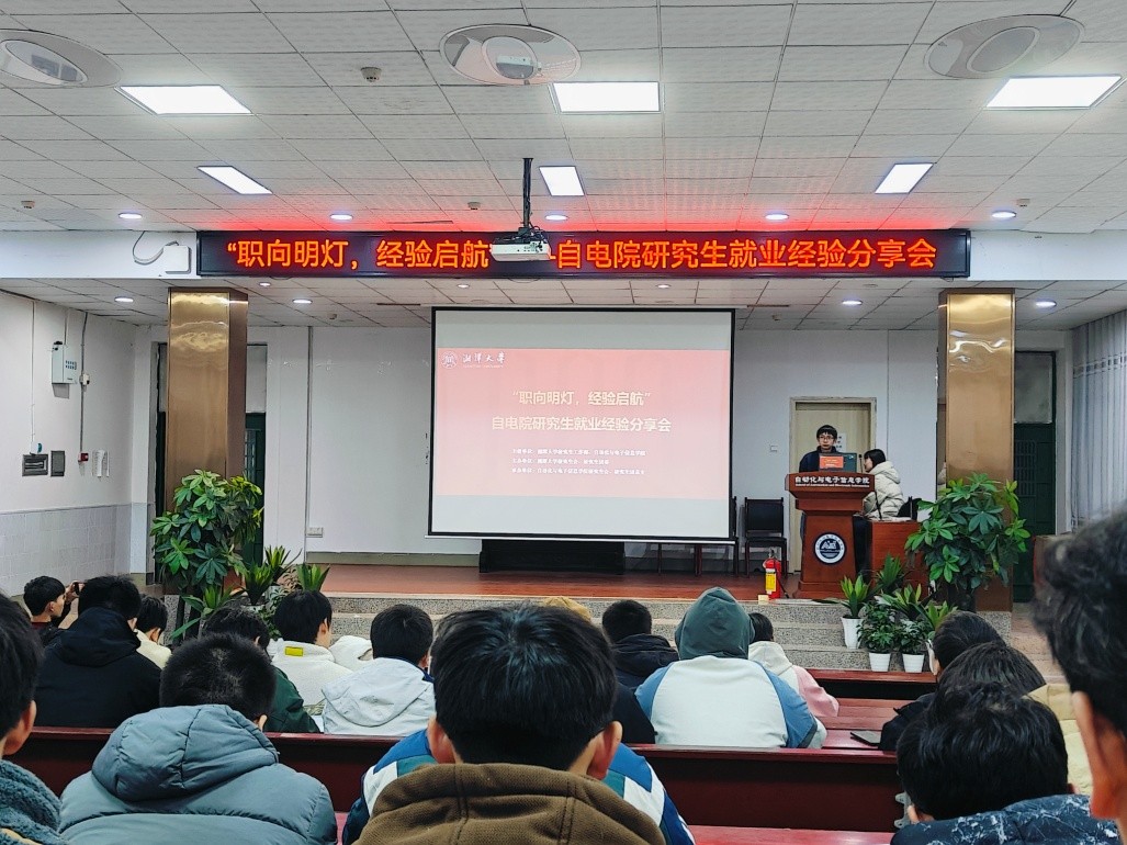 邀请了已就业的三位师兄陈易平、秦烽泰、彭程作为主讲嘉宾,在工科楼阶梯教室开展了“职向明灯,经验启航”——优秀毕业研究生就业经验分享为主题的活动。