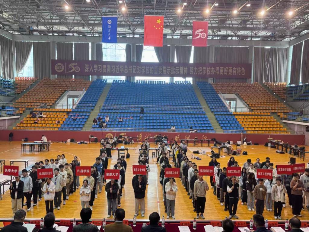 大赛和论坛开幕式在我校体育馆举行。校纪委书记王继东出席并致辞,中国人工智能学会理事会副秘书长、北京信息科技大学陈雯柏,中国人工智能学会智能检测与运动控制专业委员会主任、南京理工大学郭健教授,中国人工智能学会智能检测与运动控制专业委员会副主任、南京工业大学李丽娟教授,湖南省机器人科技教育学会秘书长马学品老师,湖南大学袁小芳教授,南京工业大学沈捷老师,南京理工大学游安华老师,以及我校爱漫岛