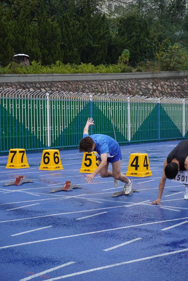 在激烈的百米赛跑中,姜铖磊同学奋力拼搏,以11.6秒的成绩夺得了男子百米第二的优异成绩。