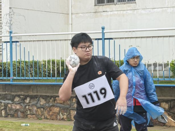 铅球赛场上,肖斌阳同学凭借过硬实力,以9.24米拿下男子铅球第二名的荣誉。