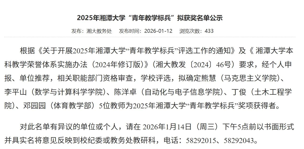 “青年教学标兵”称号。