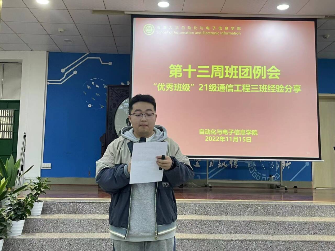 杨四海同学在班团例会上做优秀班级经验分享